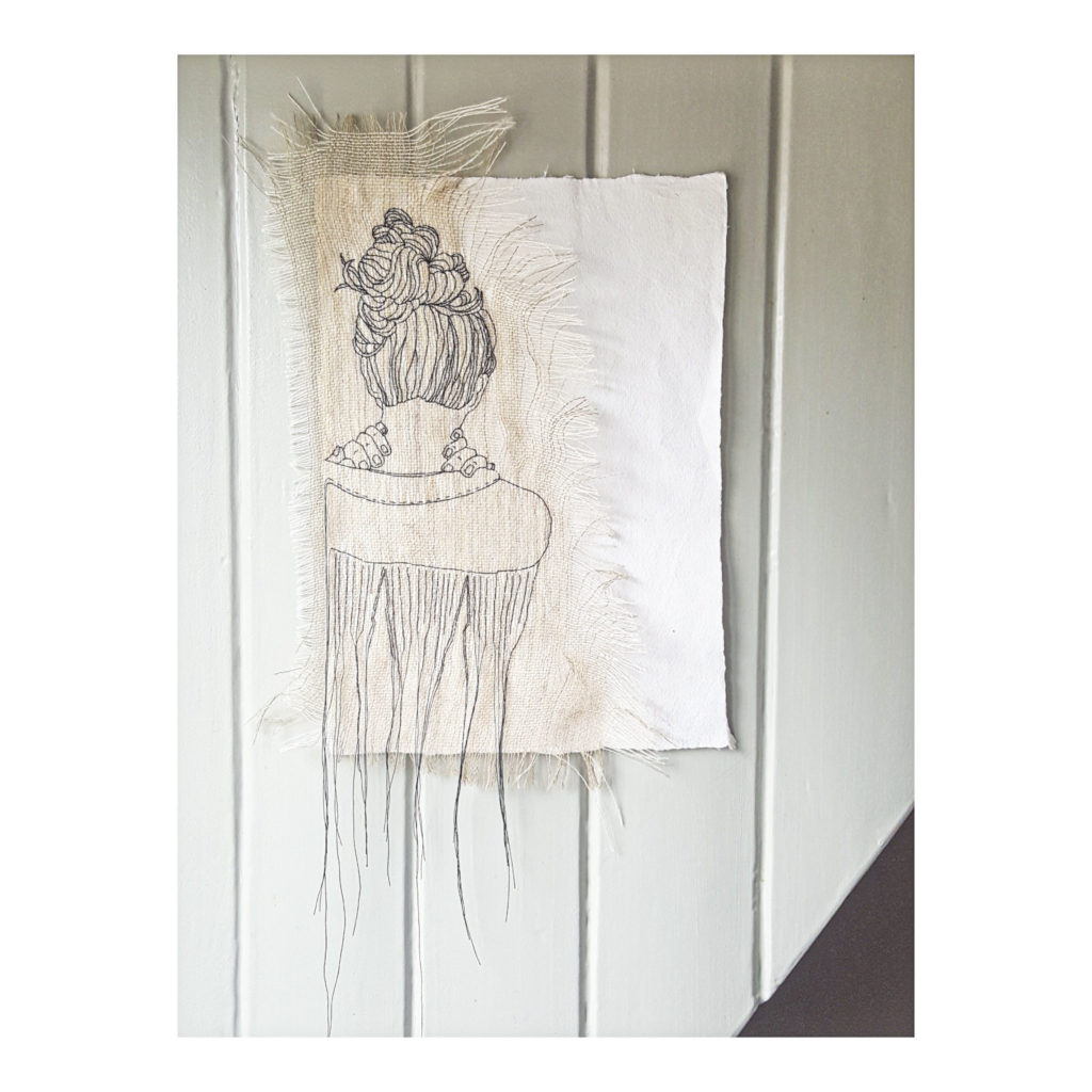 EN | Embroidered artwork of my self-portrait. My back. Made on handmade paper and secured with an intermediate layer of cotton and wool.
