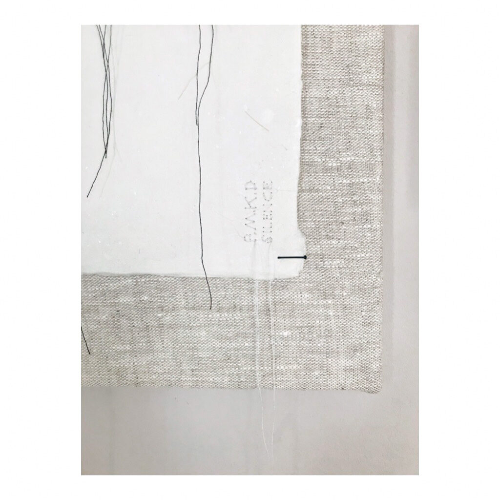 NL | Stilte in een spel met kleur en licht. Het zelfportret is opgezet in wit draad en verder bewerkt aan een zijde. Hierdoor wordt lichtval en schaduwzijde duidelijk benadrukt. Artwork Silence is gecreëerd voor de Kunstlijn Haarlem 2022.