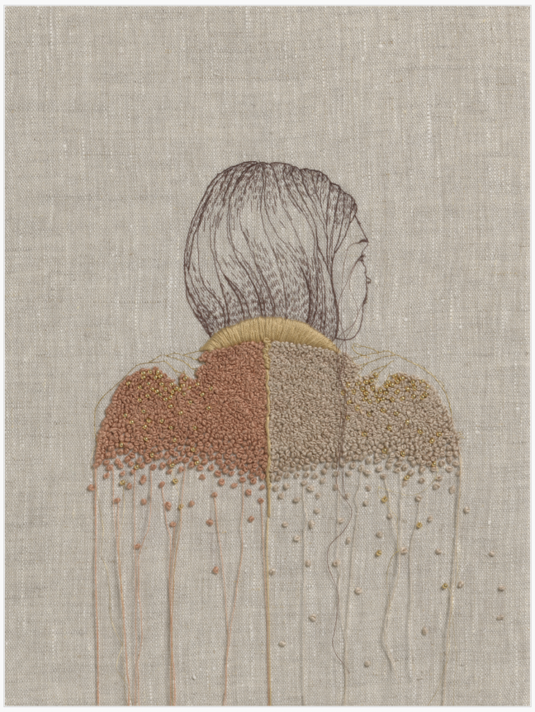 EN | Embroidered artwork of my self-portrait. My back. Made on handmade paper and secured with an intermediate layer of cotton and wool.