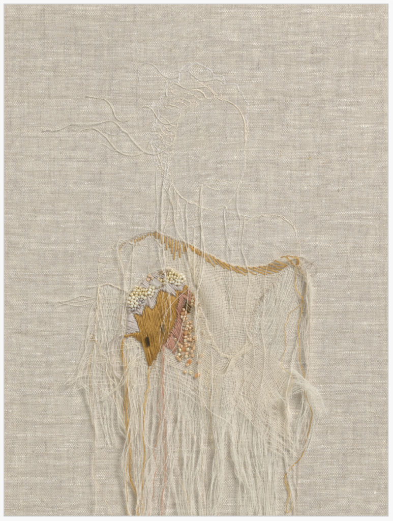 size | 50 x 70 cm | 100% linen – embroidery floss – gold thread – pins